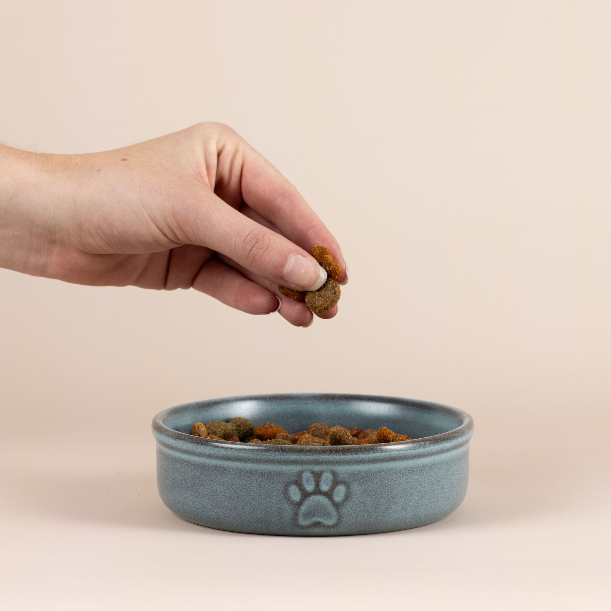 Vacker blå-grå keramikskål med tassavtryck från det välkända Engelska företaget Mason Cash.