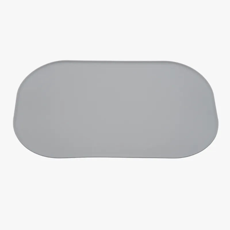 Stilrent och halkfritt matskålsunderlägg som tack vare sina praktiska kanter skyddar golvet mot matspill och vattenstänk. Tillverkad av mjukt material som kännetecknas av hög friktion, vilket förhindrar både skålen och underlägget från att glida.