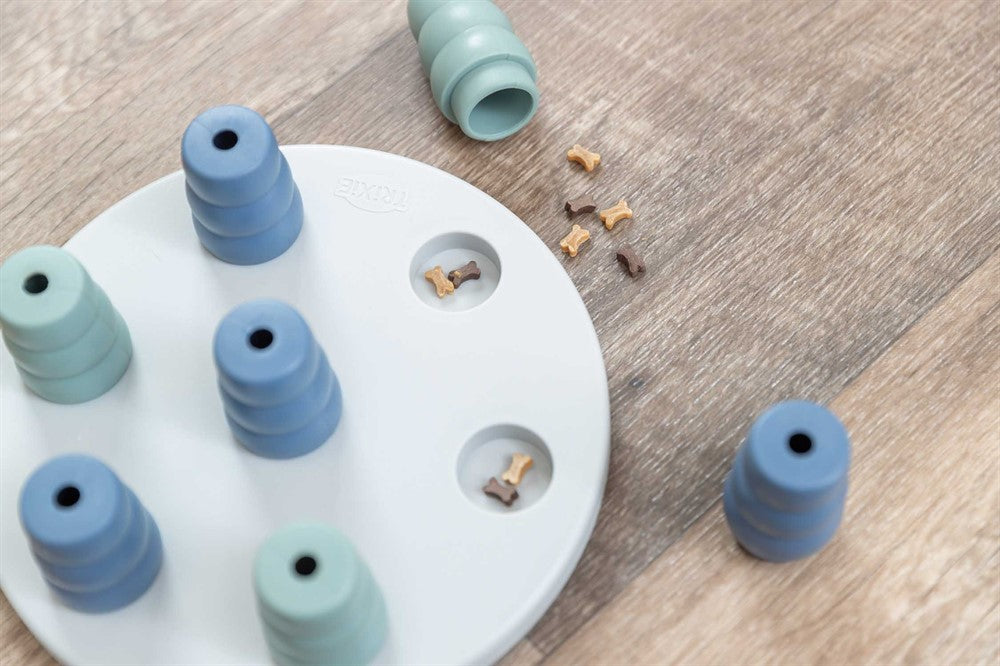 Mini Solitaire är ett gulligt och klurigt aktiveringsspel som ger små hundar härlig hjärngympa. På spelbrädet finns 7 koner där du kan gömma små godbitar – och din fyrbenta vän får använda nos och tassar för att lyfta konerna och hitta belöningen. Perfekt för att skapa en mysig stund tillsammans och ge mental stimulans i vardagen. Spelet står stadigt med halkfri gummibasring, är tillverkat i plast och tål diskmaskin. Träningsinstruktioner ingår.