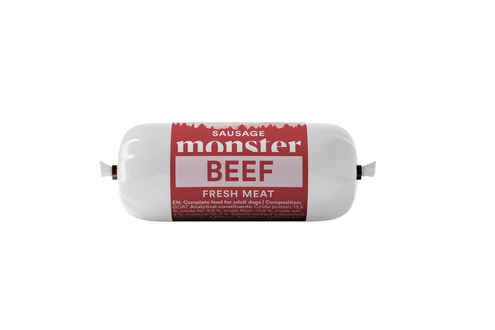 Tack vare sin fasta konsistens går Monster Sausage utmärkt att dela till små bitar och ha i fickan som belöningsgodis vid träning.