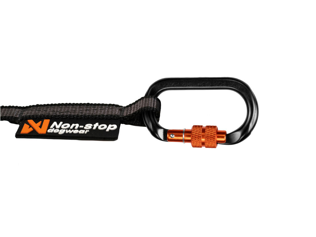 Non-stop dogwear Touring Bungee är utvecklad för vandring. Touring Bungee fungerar också bra för löpning, skidåkning och cykling om hunden drar måttligt. Den elastiska delen är monterad för att undvika för mycket rörelse i bungee. Resten av bungee är statisk för att ge dig extra kontroll över hunden. Touring Bungee har en integrerad reflekterande rand. Touring Bungee finns i två bredder. 13 mm kommer med en lätt karbinhake med skruv-lås, medan 23 mm kommer med en twist-lock karbinhake.