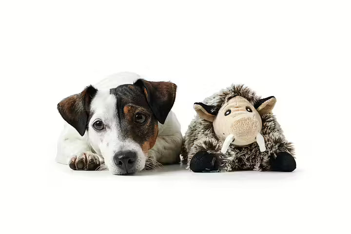 Mjuk och mysig hundleksak i polyester. Leksaken har ingen pip och kan handtvättas.